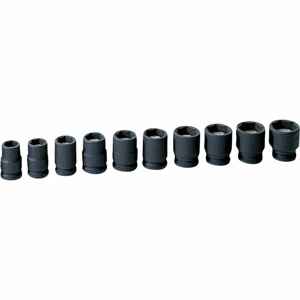 A 10 piece set of magnetic impact sockets.Β With their strong internal magnets, and compact design (only 30mm high), these sockets are ideal for use in tight areas.