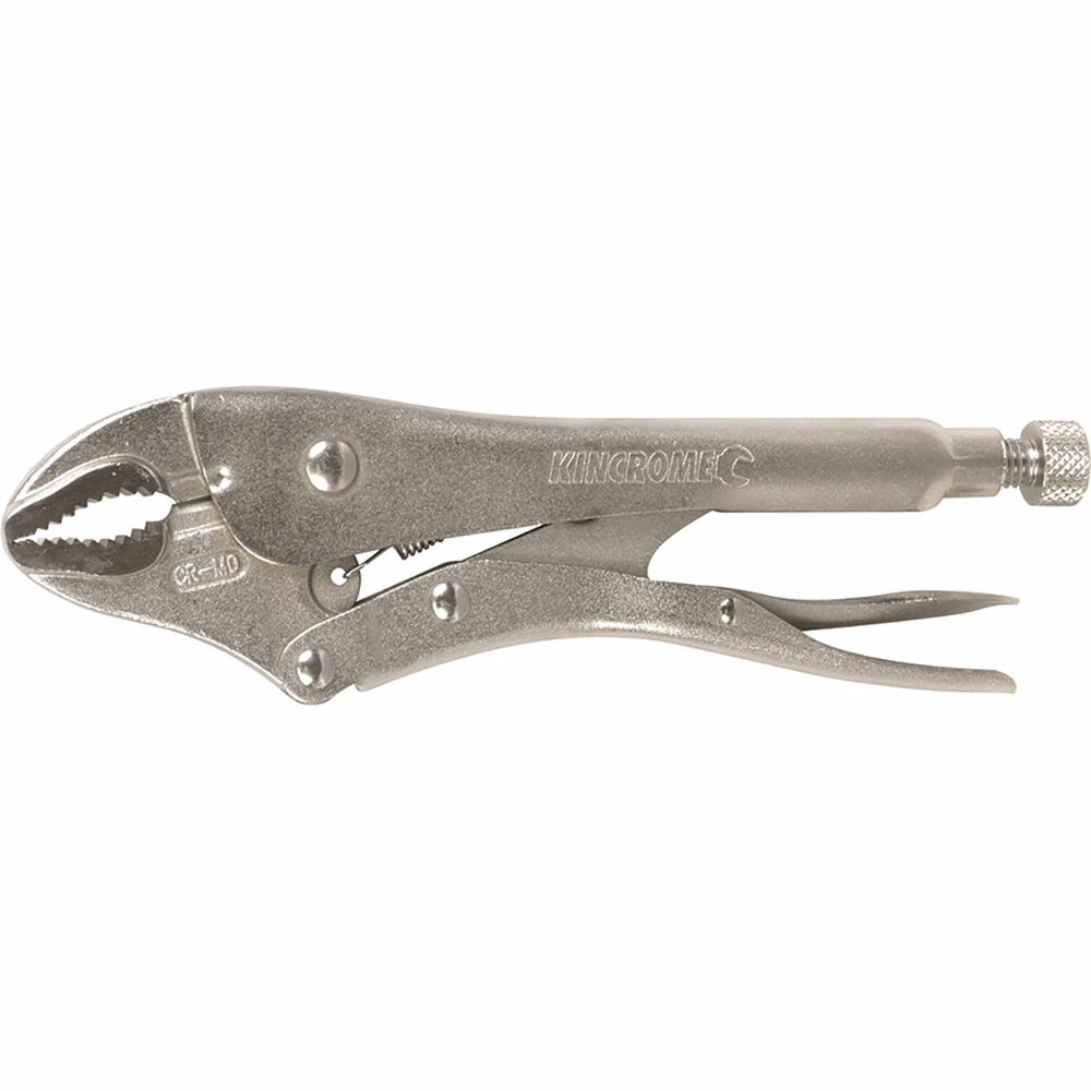 Locking pliers are an essential tool for all tradies. Kincrome Curved Jaw Locking Pliers are designed to grip, lock and clamp onto a range of different materials and fasteners. The adjustable serrated jaw opening allows for simple adjustment via the adjustment screw, providing superb grip strength. Kincrome Curved Jaw Locking Pliers are built to last thanks to the chrome molybdenum jaws and high quality pressed steel handles coupled with nickel plating for long term corrosion resistance.