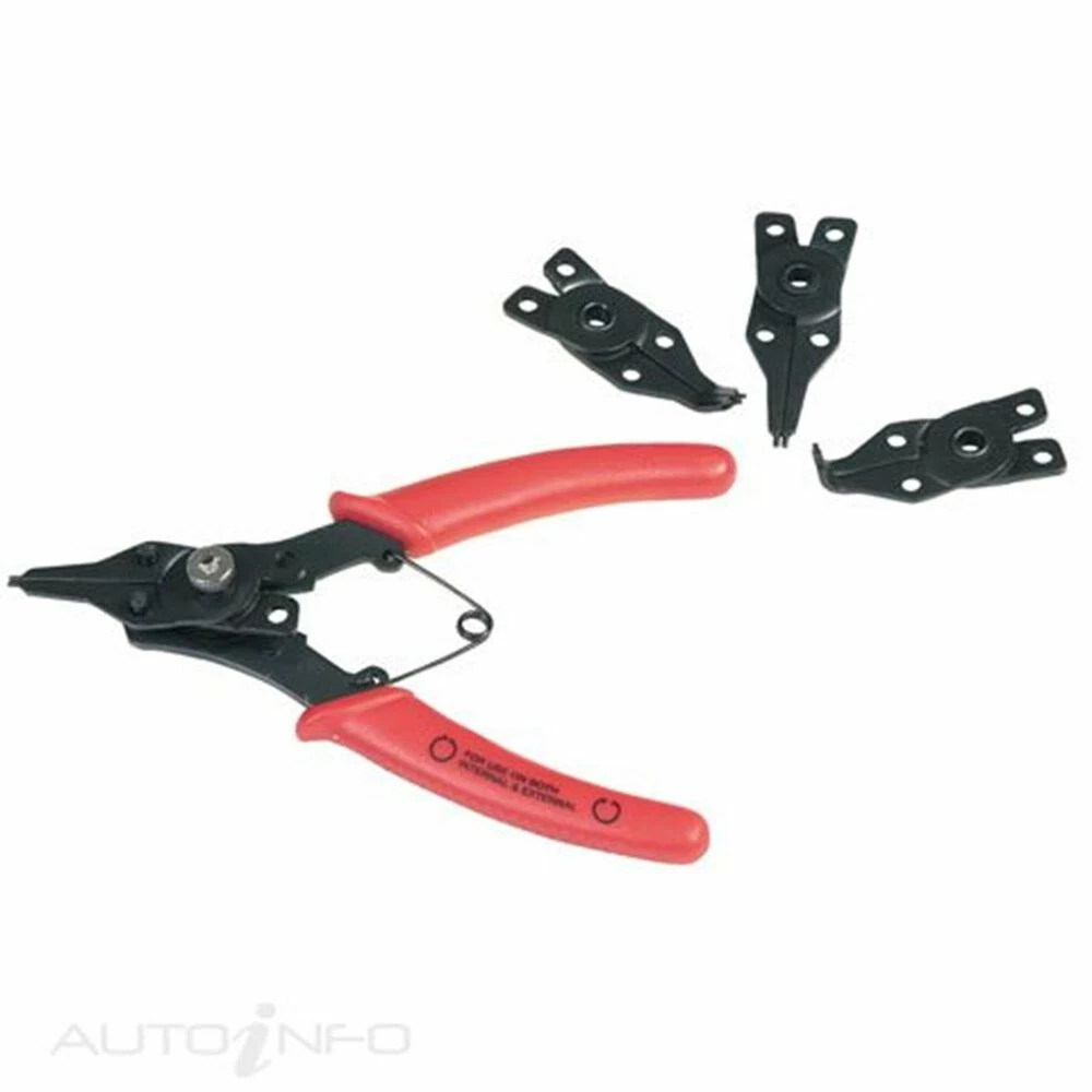 Universal circlip plier set designed for quick tip change. Supplied with straight tips and angled tips 45Β° and 90Β°. This circlip plier set is all you need and covers a multitude of applications with large versatility