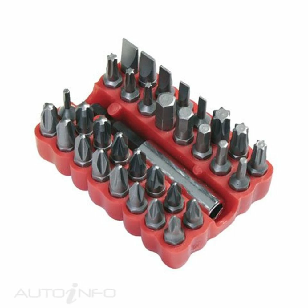 Compact bit set with a variety of popular screw head combinations including Slotted, Phillips, Pozidriv, Tamper Proof Torx and Hex. For the removal and installation of screws, bolts and fittings and ideal for use with power screwdrivers or drills