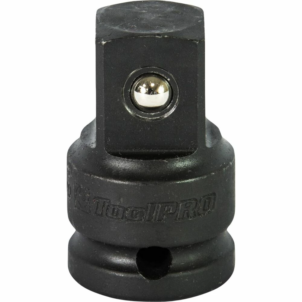 Do you have some big bolts that need undoing, but all you have on hand is a 1/2″ impact wrench? Sometimes it can be difficult to find big sockets in 1/2″ drive, but with this ToolPRO Impact Socket Adaptor you can use 3/4″ drive sockets instead. Manufactured from chrome molybdenum and black oxide coated this adaptor is protected from corrosion and abrasion damage. The heavy duty construction features a spring ball detent to keep your socket in place while manoeuvreing the tool onto the fastener.