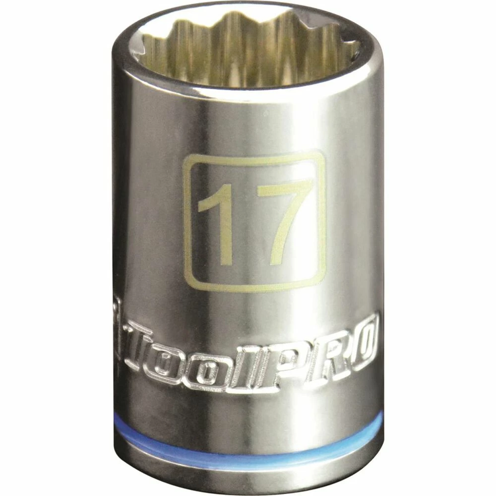 This 17mm single socket by ToolPRO is an ideal addition to any socket set. Made from high quality durable chrome vanadium steel and finished in a high polish easy to clean finish they are protected from corrosion and abrasion damage. The 12 point socket design allows for easy and damage-free removal of fasteners. This socket is suitable for 1/2″ drive ratchets and breaker bars but is not suitable for impact applications. Each socket features a colour coded band to signify whether it’s metric or SAE and is backed by Supercheap Auto’s amazing lifetime warranty.