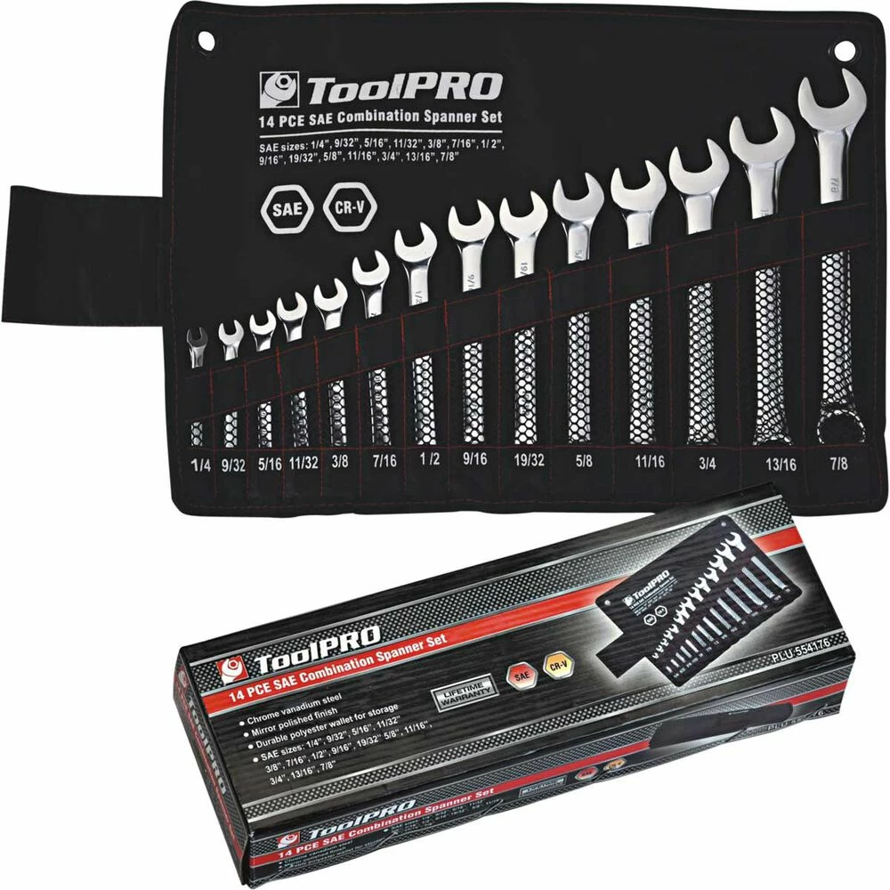 ToolPRO Spanners meet and exceed both DIN and ANSI standards, so you can be sure that they are sturdy enough to tackle any job you need done. And if that wasnβt enough, each spanner comes with a lifetime warranty giving you peace of mind over years of service in the workshop. Supplied in a water resistant nylon spanner roll with steel eyelets to hang on the wall to keep your spanners tidy and organised.