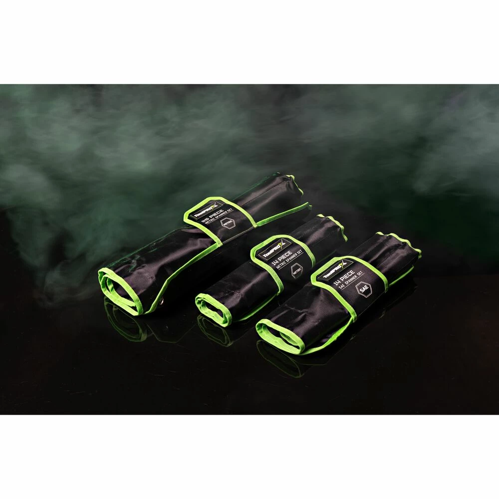 - Stored in a convenient tool roll with eyelets for easy mounting or hanging on the wall